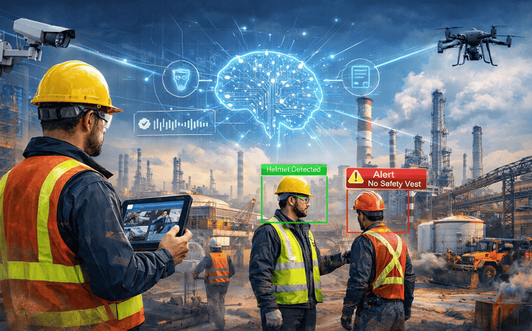 Across manufacturing plants, logistics hubs, refineries, and large industrial campuses, safety compliance often weakens once employees and contractors move beyond entry points. While PPE usage is typically enforced at gates, adherence drops inside operational areas. Monitoring these violations through manual audits or surprise inspections has proven ineffective, offering only short-term compliance and limited prevention. Continuous human monitoring of CCTV feeds is operationally expensive, prone to error, and largely useful only for post-incident investigation—after damage has already occurred.